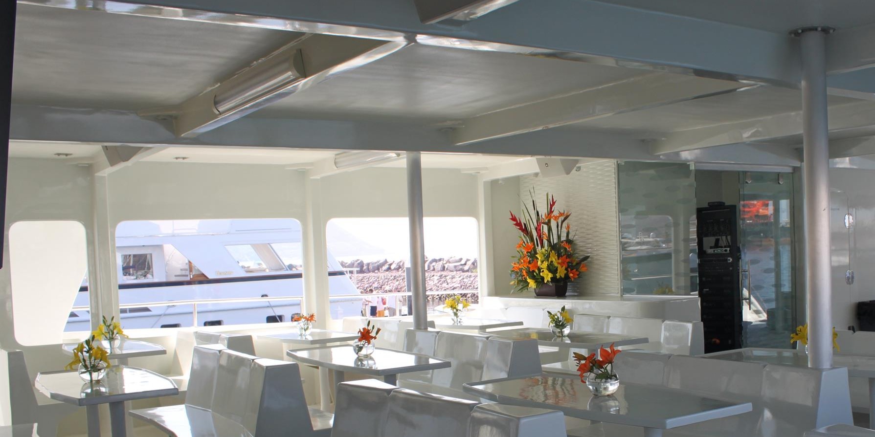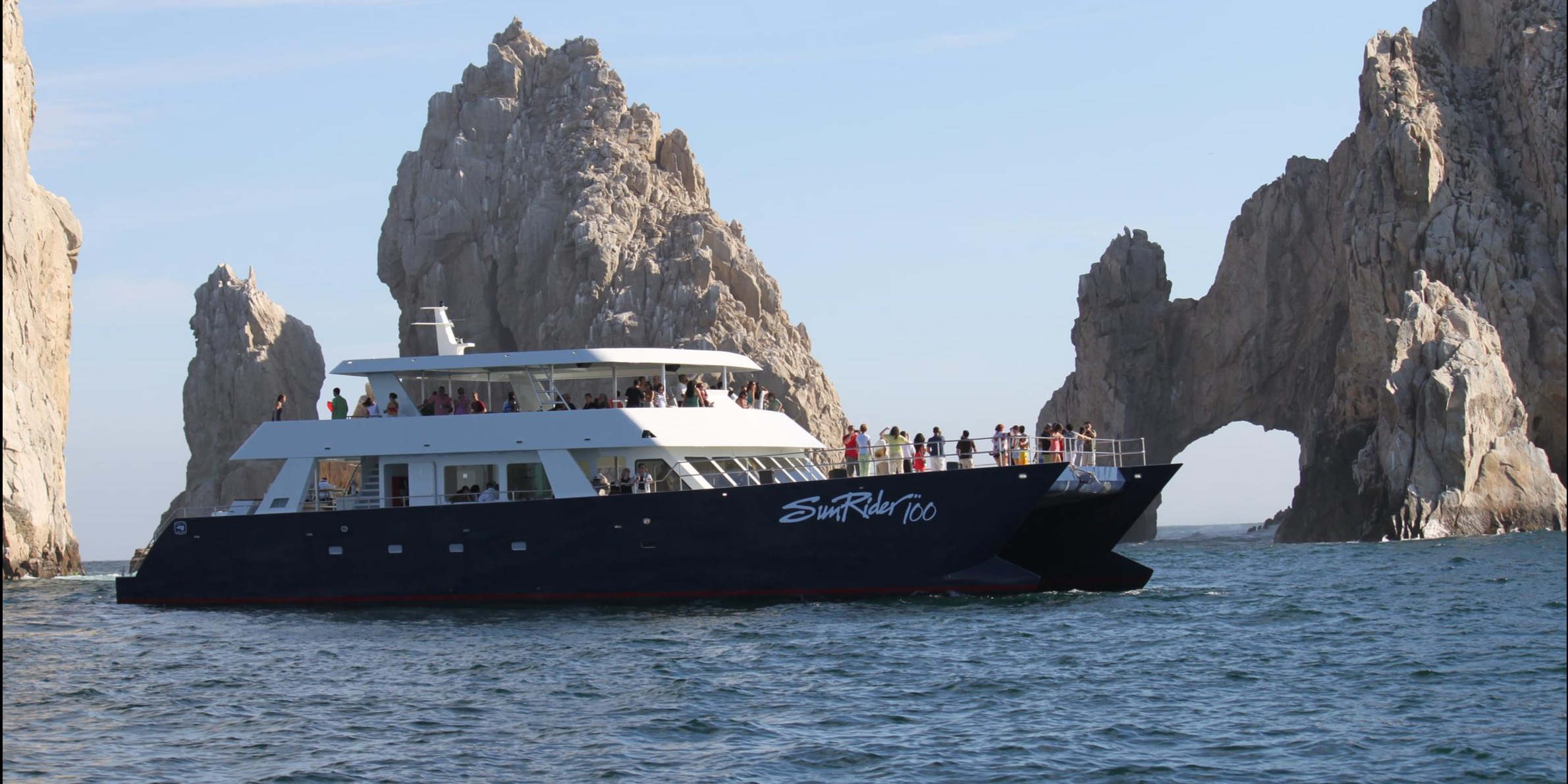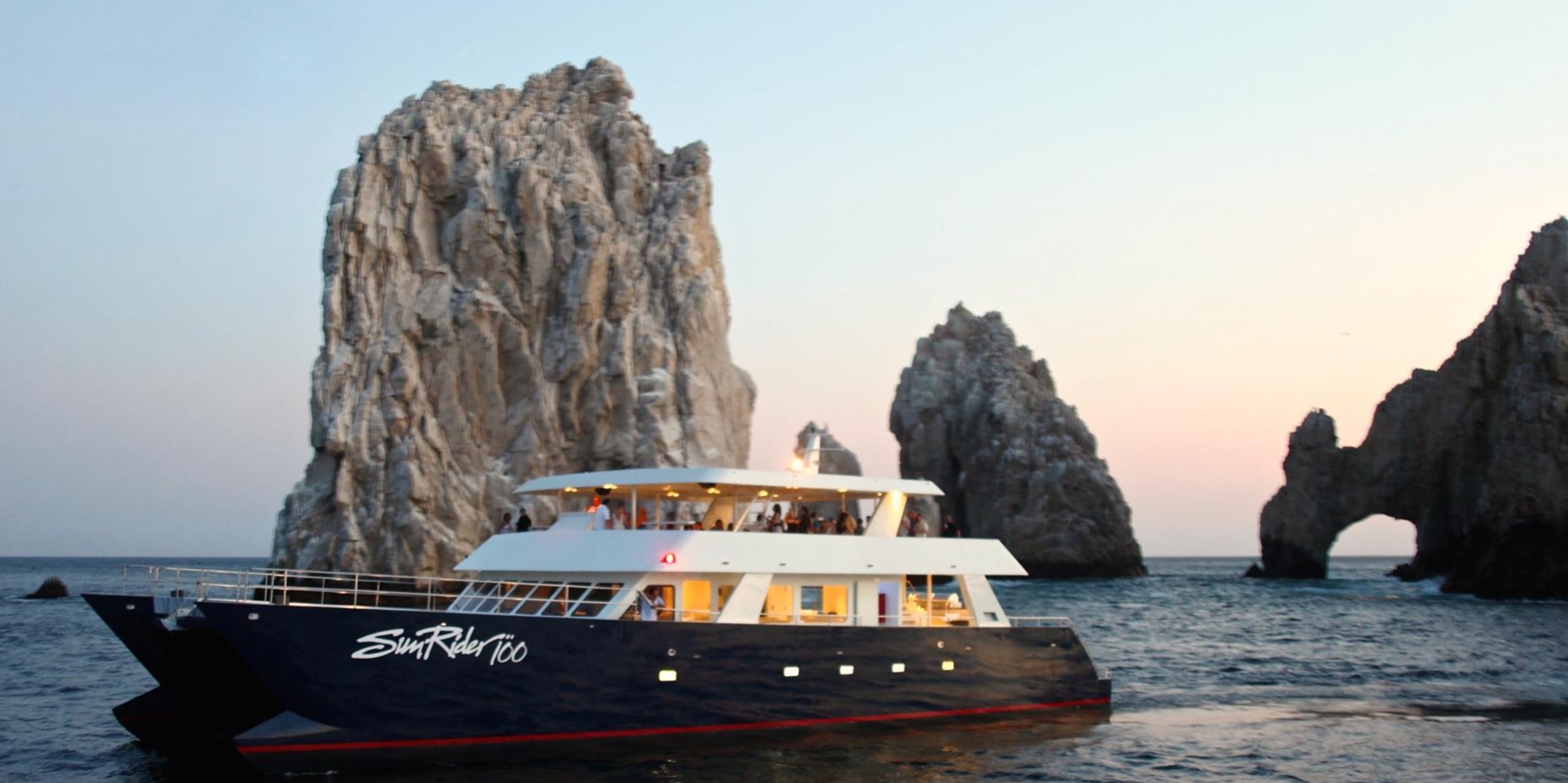 Experience the Sunset on our SunRider100 our 100” double decker catamaran with capacity for up to 250 people. The SunRider100 is ready for you! enjoy surround sound music, 360-degree views, dance floor with lights, Mexican buffet, spacious bathrooms, open bar and much more! Our friendly and professional crew will always be attentive to offer you your favorite freshly prepared drink. Here at SunRider we count with all the necessary hygiene and safety measures for you to be able to sit back relax and enjoy an evening at sea.